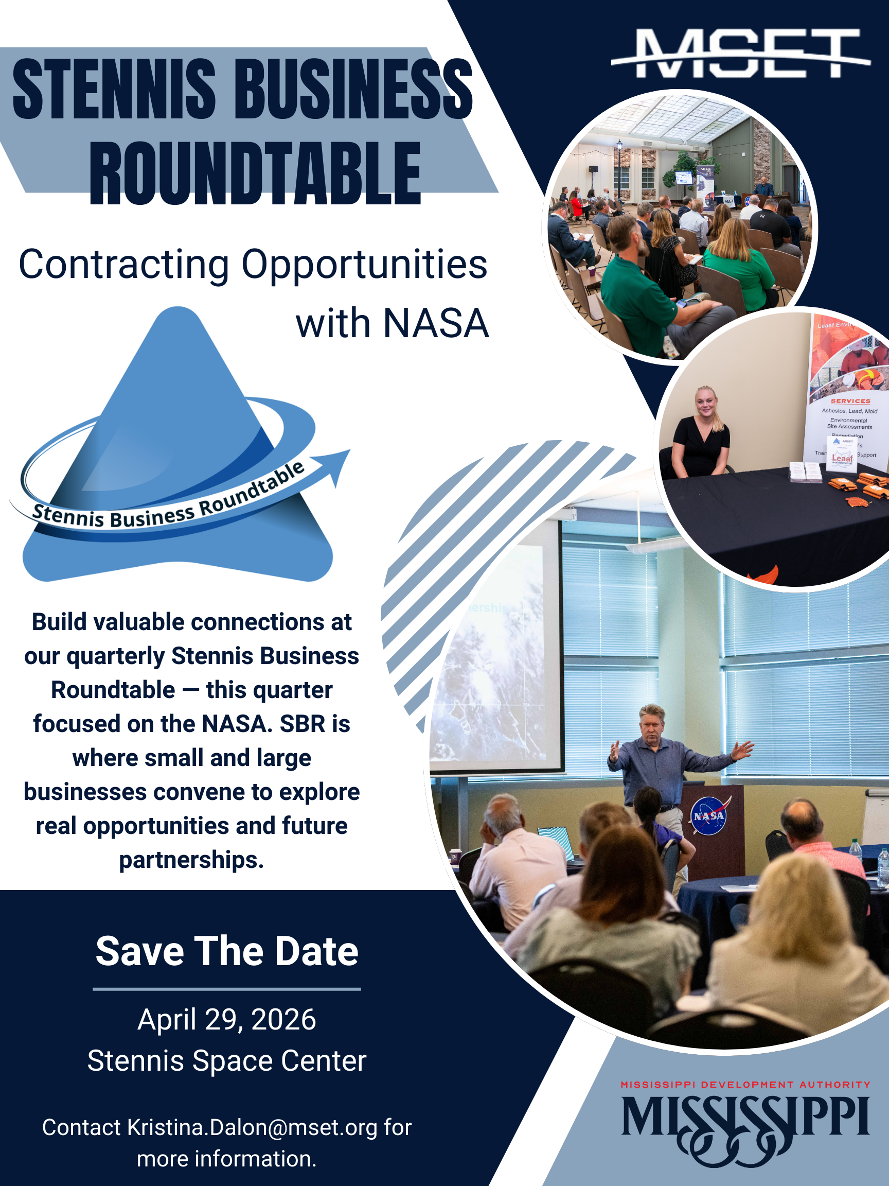The Mission of the Stennis Business Roundtable is to promote and facilitate the exchange of information and best practices as it relates to the growth and expansion of small business endeavors in the area surrounding NASA’s Stennis Space Center. Four forums will be held per year for the SBR.